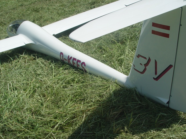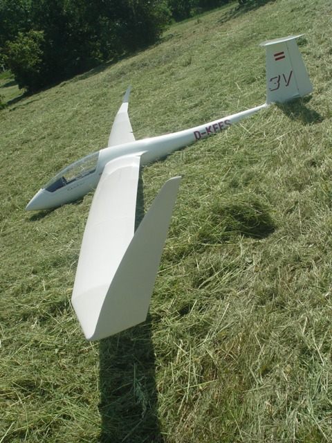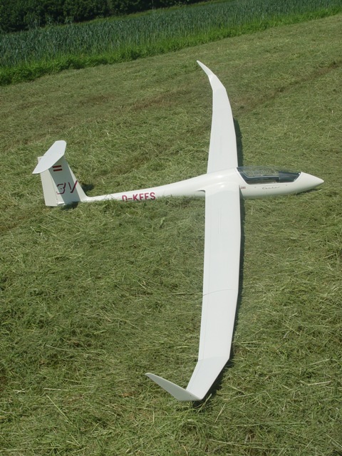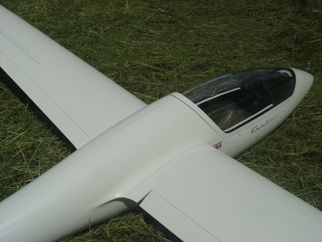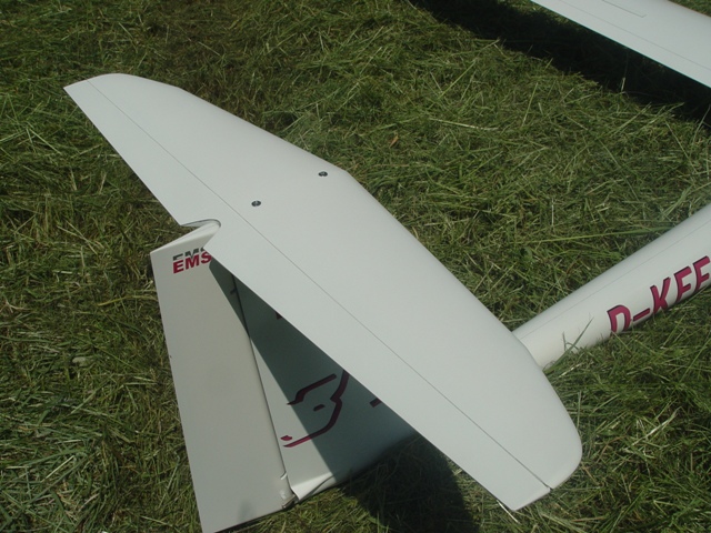 The wing is a composite of fiberglass, carbon fiber and Herex sandwich materials. The wing spar consists of carbon roving and fiberglass sandwich web filled with balsa wood. The split flaps change the curvature of the airfoil. According to the modern aerodynamic concept a three-times-defracted wing profile ensures optimum stability during circling. The attachment of the wing to the fuselage is carried out by the extention of the wing spar and secured by a pin, just the way it is in the real sailplane.